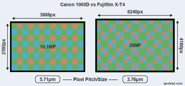 | Sensor Specs | Canon 1000D | Fujifilm X-T4 |
