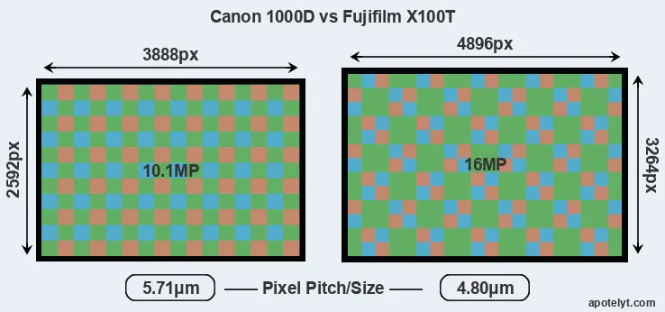 | Sensor Specs | Canon 1000D | Fujifilm X100T |