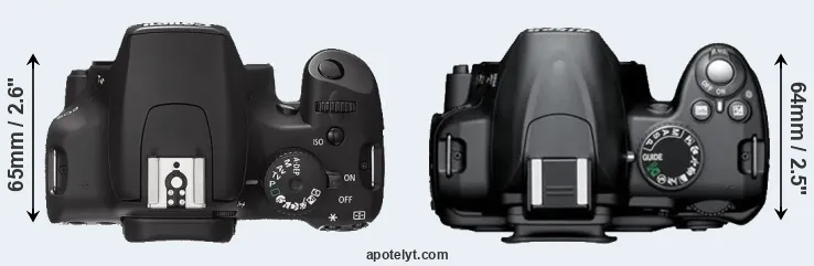 | 5. | Canon 500D | 129 mm | 98 mm | 62 mm | 520 g | 400 | n | Mar 2009 | US$ 799 | ebay.com | |