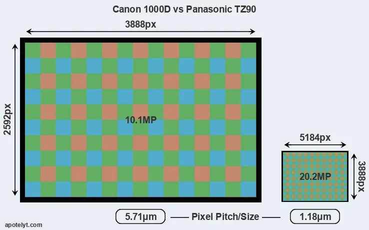 | Sensor Specs | Canon 1000D | Panasonic TZ90 |