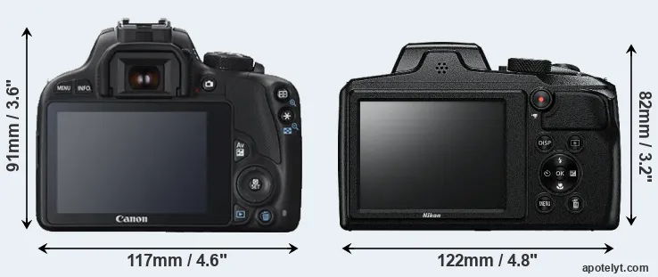 Going beyond this snapshot of core features and characteristics, what are the differences between the Canon EOS 100D and the Nikon Coolpix B600? Which one should you buy? Read on to find out how these two cameras compare with respect to their body size, their imaging sensors, their shooting features, their input-output connections, and their reception by expert reviewers.