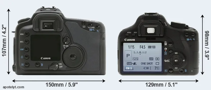 | 10. | Canon 300D | 142 mm | 99 mm | 72 mm | 649 g | 400 | n | Aug 2003 | US$ 899 | ebay.com | |