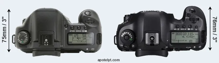 | 5. | Canon 5D Mark III | 152 mm | 116 mm | 76 mm | 950 g | 950 | Y | Mar 2012 | US$ 3 499 | ebay.com | |