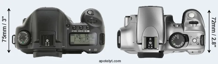 | 2. | Canon Rebel | 142 mm | 99 mm | 72 mm | 649 g | 400 | n | Aug 2003 | EUR 1 095 | ebay.com | |