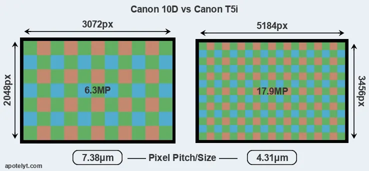 | Sensor Specs | Canon 10D | Canon T5i |