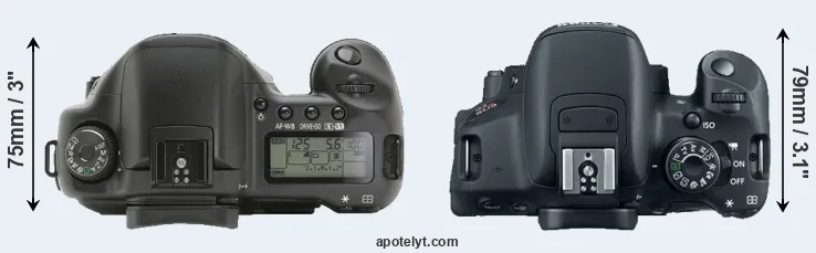 | 13. | Canon T6i | 132 mm | 101 mm | 78 mm | 555 g | 440 | n | Feb 2015 | US$ 749 | ebay.com | |