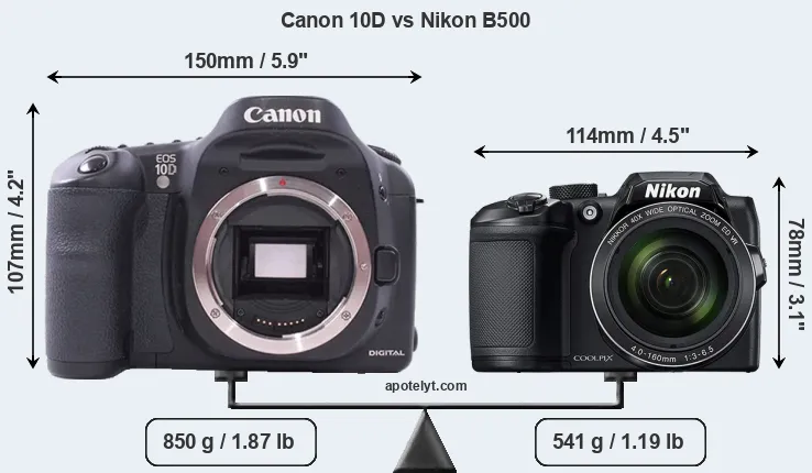 | Body Specs | Canon 10D | Nikon B500 |