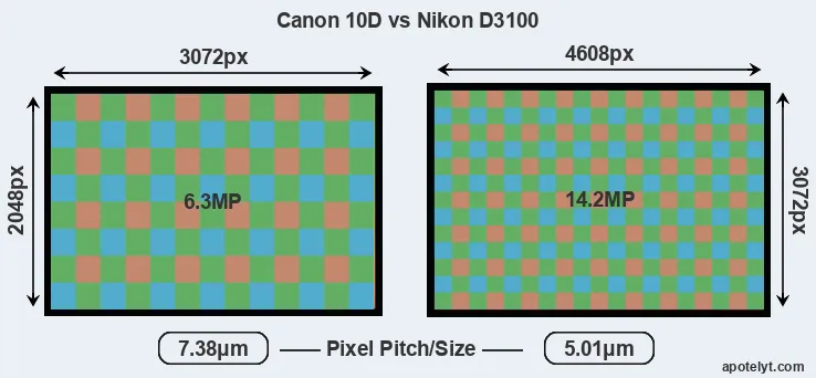 | Sensor Specs | Canon 10D | Nikon D3100 |