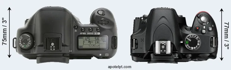 | 5. | Canon 30D | 144 mm | 106 mm | 74 mm | 785 g | 750 | n | Feb 2006 | US$ 1 399 | ebay.com | |