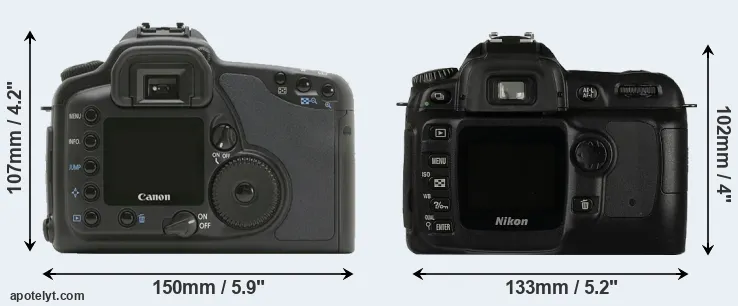 | 17. | Nikon D100 | 144 mm | 116 mm | 81 mm | 780 g | 370 | n | Feb 2002 | US$ 1 999 | ebay.com | |