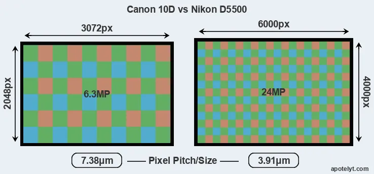 | Sensor Specs | Canon 10D | Nikon D5500 |