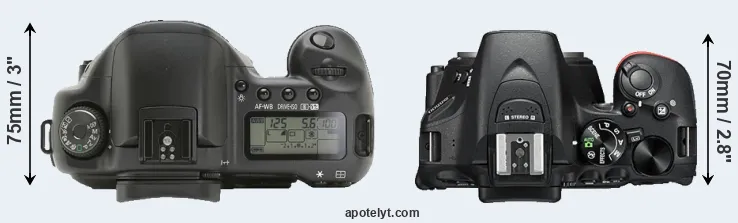 | 17. | Nikon D5600 | 124 mm | 97 mm | 70 mm | 465 g | 970 | n | Nov 2016 | US$ 699 | ebay.com | |