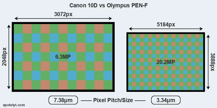 | Sensor Specs | Canon 10D | Olympus PEN-F |