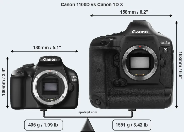 Size Canon 1100D vs Canon 1D X