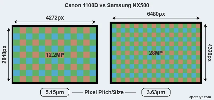 | Sensor Specs | Canon 1100D | Samsung NX500 |