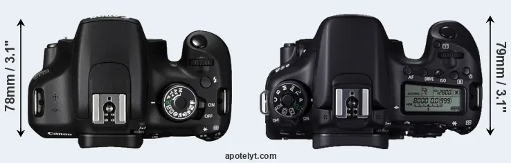 | 5. | Canon 80D | 139 mm | 105 mm | 79 mm | 730 g | 960 | Y | Feb 2016 | US$ 1 199 | ebay.com | |