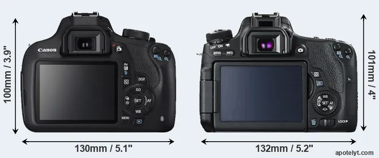 | 2. | Canon 760D | 132 mm | 101 mm | 78 mm | 565 g | 440 | n | Feb 2015 | US$ 649 | ebay.com | |