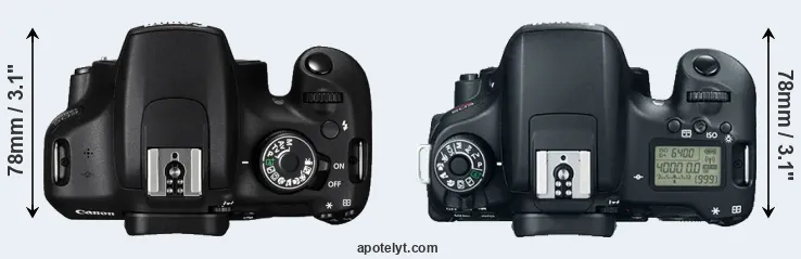 | 1. | Canon 1200D | 130 mm | 100 mm | 78 mm | 480 g | 500 | n | Feb 2014 | US$ 449 | ebay.com | |
