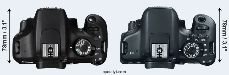 | 1. | Canon 1200D | 130 mm | 100 mm | 78 mm | 480 g | 500 | n | Feb 2014 | US$ 449 | ebay.com | |