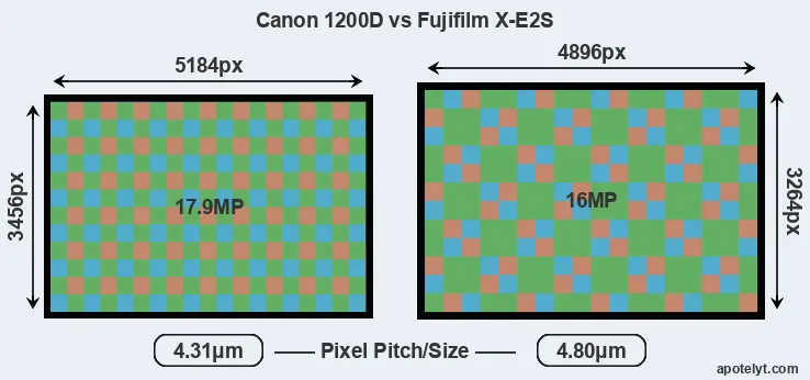 | Sensor Specs | Canon 1200D | Fujifilm X-E2S |