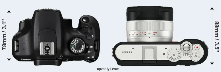 Going beyond this snapshot of core features and characteristics, what are the differences between the Canon EOS 1200D and the Leica X-U (Typ 113)? Which one should you buy? Read on to find out how these two cameras compare with respect to their body size, their imaging sensors, their shooting features, their input-output connections, and their reception by expert reviewers.