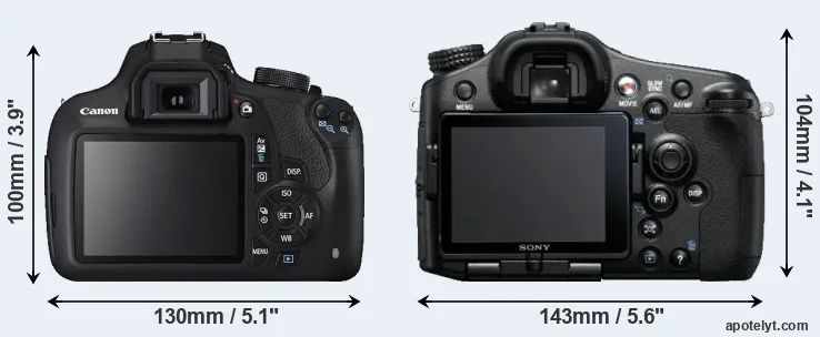 Going beyond this snapshot of core features and characteristics, what are the differences between the Canon EOS 1200D and the Sony Alpha SLT-A77? Which one should you buy? Read on to find out how these two cameras compare with respect to their body size, their imaging sensors, their shooting features, their input-output connections, and their reception by expert reviewers.