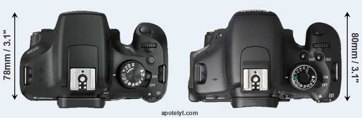 | 5. | Canon 750D | 132 mm | 101 mm | 78 mm | 555 g | 440 | n | Feb 2015 | US$ 749 | ebay.com | |