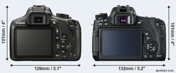| 5. | Canon 700D | 133 mm | 100 mm | 79 mm | 580 g | 440 | n | Mar 2013 | US$ 649 | ebay.com | |