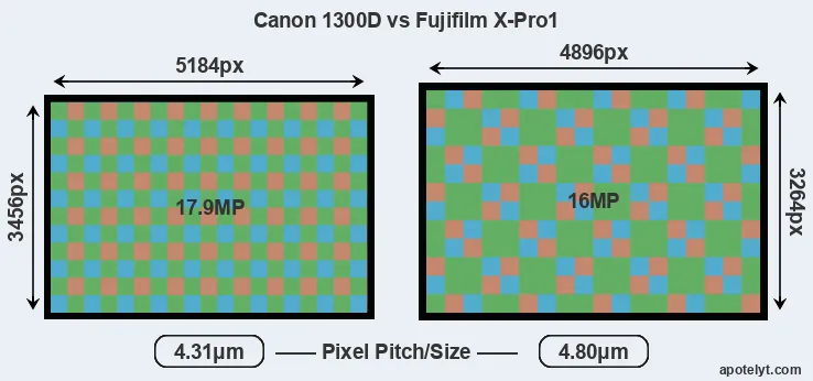 | Sensor Specs | Canon 1300D | Fujifilm X-Pro1 |