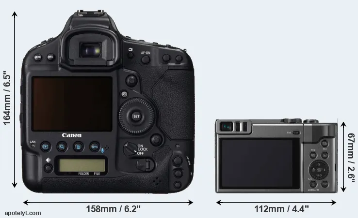 The above size and weight comparisons are to some extent incomplete and possibly misleading, as the ZS70 has a lens built in, whereas the 1DC is an interchangeable lens camera that requires a separate lens. Attaching the latter will add extra weight and bulk to the setup. You can compare the optics available for the 1DC and their specifications in the Canon EF Lens Catalog.