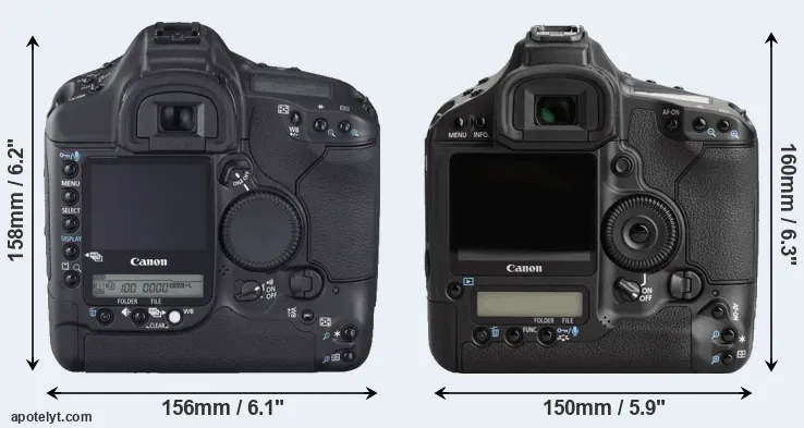| 7. | Canon 1Ds Mark II | 156 mm | 158 mm | 80 mm | 1215 g | 1200 | Y | Sep 2004 | US$ 7 999 | ebay.com | |