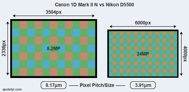 | Sensor Specs | Canon 1D Mark II N | Nikon D5500 |