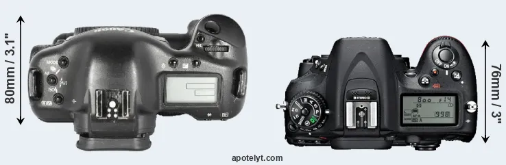 | 8. | Canon 1Ds Mark II | 156 mm | 158 mm | 80 mm | 1215 g | 1200 | Y | Sep 2004 | US$ 7 999 | ebay.com | |
