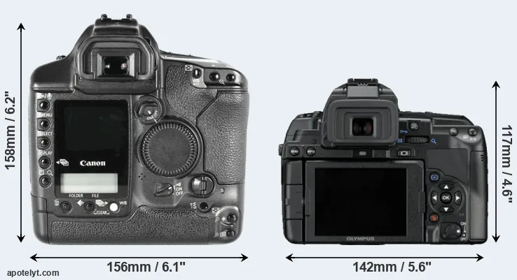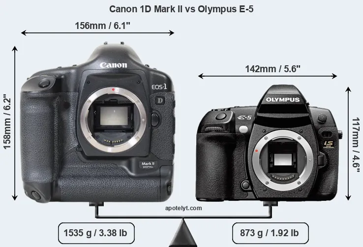 Size Canon 1D Mark II vs Olympus E-5