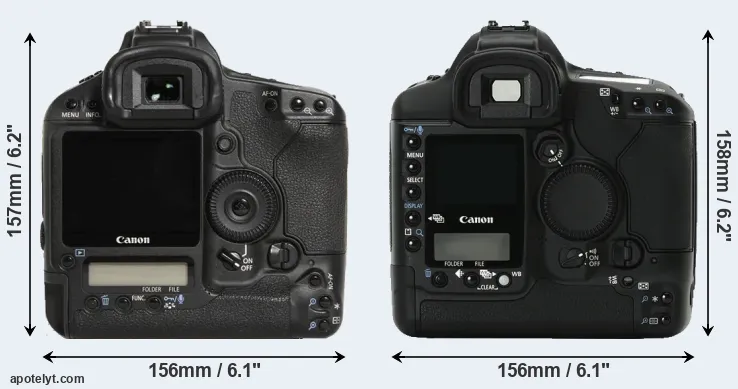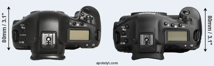 | 6. | Canon 1Ds | 156 mm | 158 mm | 80 mm | 1265 g | 600 | Y | Sep 2002 | US$ 8 999 | ebay.com | |