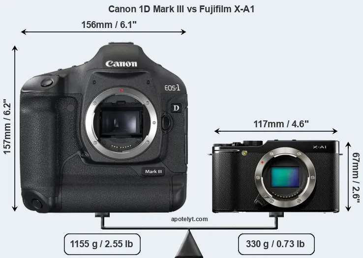Size Canon 1D Mark III vs Fujifilm X-A1