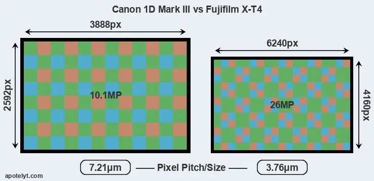 | Sensor Specs | Canon 1D Mark III | Fujifilm X-T4 |