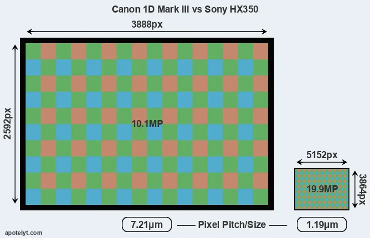| Sensor Specs | Canon 1D Mark III | Sony HX350 |