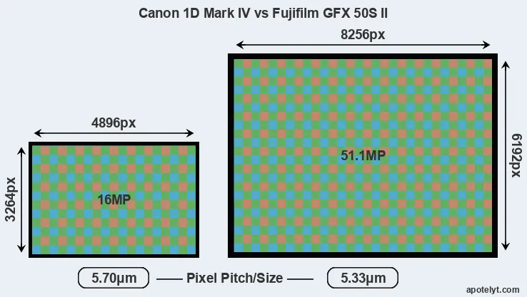 | Sensor Specs | Canon 1D Mark IV | Fujifilm GFX 50S II |