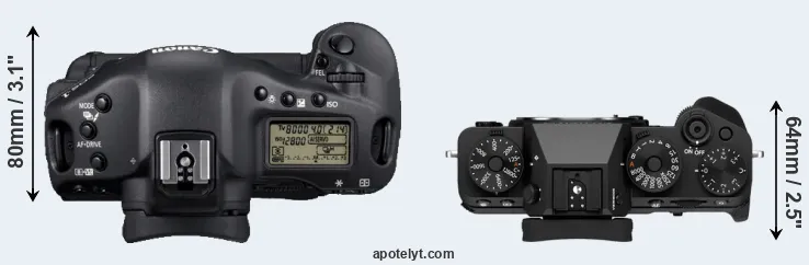 Compare 1D Mark IV versus X-T5 top