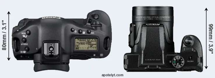 Going beyond this snapshot of core features and characteristics, what are the differences between the Canon EOS-1D Mark IV and the Nikon Coolpix B600? Which one should you buy? Read on to find out how these two cameras compare with respect to their body size, their imaging sensors, their shooting features, their input-output connections, and their reception by expert reviewers.