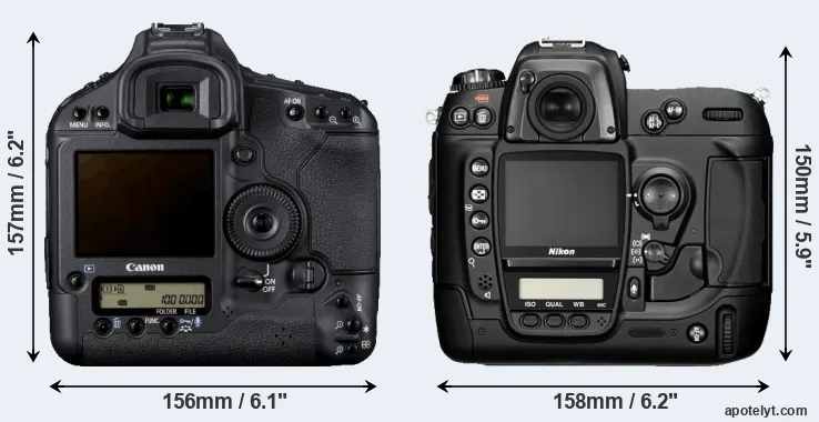 | 11. | Nikon D1H | 157 mm | 153 mm | 85 mm | 1100 g | 1200 | Y | Feb 2001 | US$ 4 499 | ebay.com | |