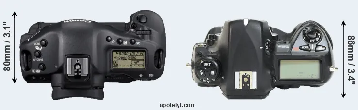 | 5. | Canon 1Ds Mark II | 156 mm | 158 mm | 80 mm | 1215 g | 1200 | Y | Sep 2004 | US$ 7 999 | ebay.com | |