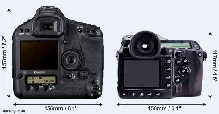 | 4. | Canon 1Ds Mark II | 156 mm | 158 mm | 80 mm | 1215 g | 1200 | Y | Sep 2004 | EUR 7 999 | ebay.com | |