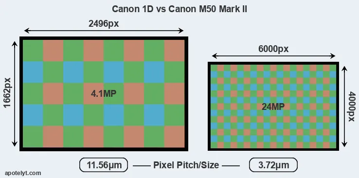 | Sensor Specs | Canon 1D | Canon M50 Mark II |