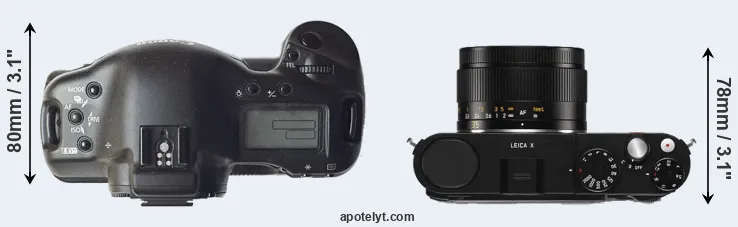 Going beyond this snapshot of core features and characteristics, what are the differences between the Canon EOS-1D and the Leica X (Typ 113)? Which one should you buy? Read on to find out how these two cameras compare with respect to their body size, their imaging sensors, their shooting features, their input-output connections, and their reception by expert reviewers.