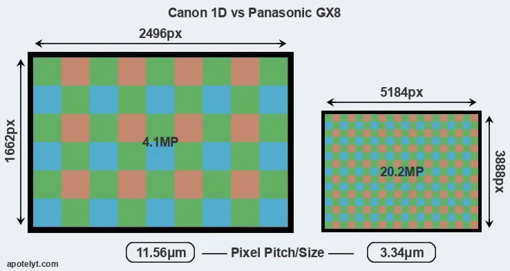 | Sensor Specs | Canon 1D | Panasonic GX8 |