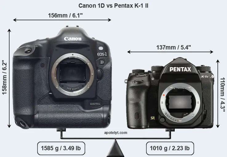 | Body Specs | Canon 1D | Pentax K-1 II |