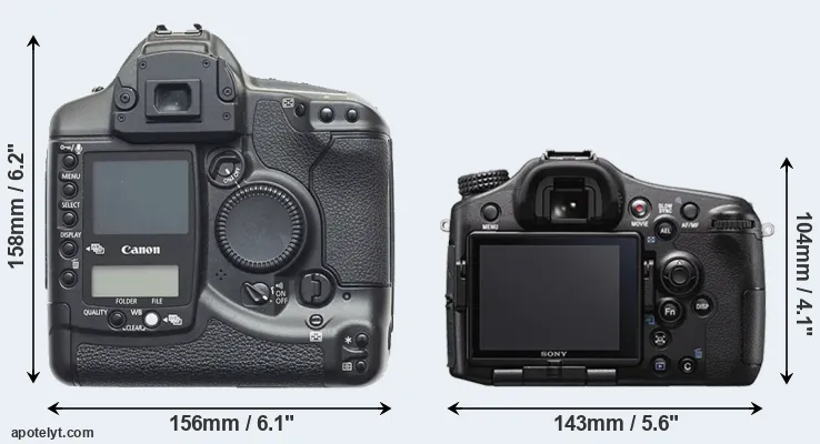 Going beyond this snapshot of core features and characteristics, what are the differences between the Canon EOS-1D and the Sony Alpha SLT-A77 II? Which one should you buy? Read on to find out how these two cameras compare with respect to their body size, their imaging sensors, their shooting features, their input-output connections, and their reception by expert reviewers.