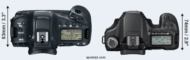 | 3. | Canon 1Ds Mark III | 150 mm | 160 mm | 80 mm | 1385 g | 1800 | Y | Aug 2007 | EUR 7 999 | ebay.com | |